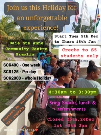 TUESDAY 5TH DECEMBER TO 15TH JANUARY / ACTIVITIES CRECHE TO S5 / COMMUNITY CENTRE / BAIE STE ANNE, PRASLIN