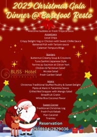 WEDNESDAY 24TH DECEMBER / CHRISTMAS GALA DINNER / BAREFOOT RESTO, BLISS HOTEL, GLACIS MAHE