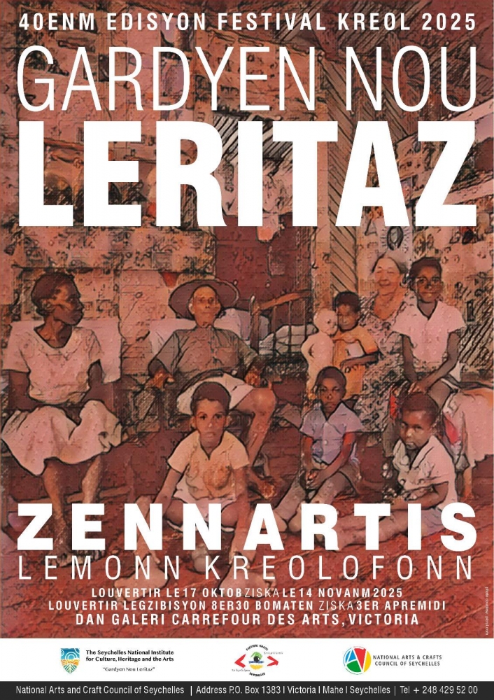 40enm edisyon Festival Kreol 2025, Konsey Nasyonal pour Lar e Lartizana I ankor enn fwa prezant zot avek son levennman aynel dan progranm Festival Kreol. Legzibizyon Zenn Artis Lemonn Kreolofonn ki pou ouver aparti le 17 Oktob ziska le 14 Novanm 2025.