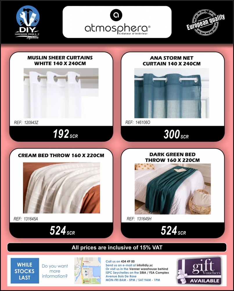Wrap your home in comfort 🤍 Soft bed linen and elegant curtains made for everyday warmth. Available at DIY Seychelles Ltd