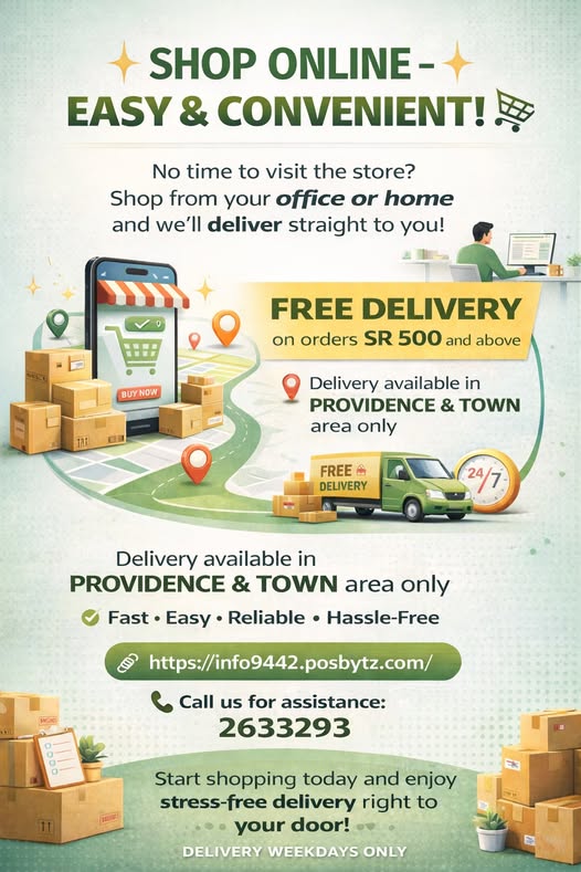 SHOP ONLINE, FREE DELIVERY ON ORDERS SR 500 AND ABOVE