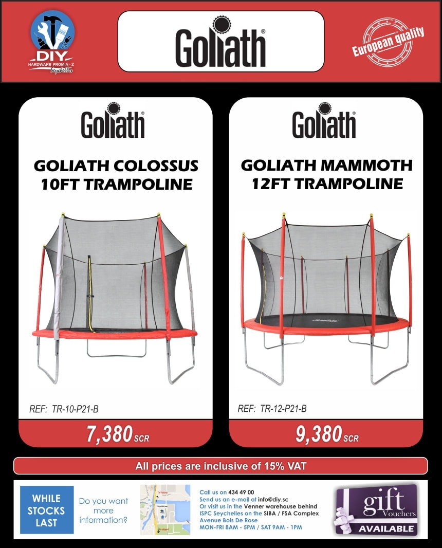 Goliath Trampolines available at DIY Seychelles Ltd !