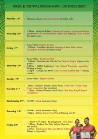 MONDAY 13TH OCTOBER TO FRIDAY 24TH OCTOBER : Progranm ofisyel 40an Festival Kreol