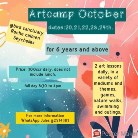 OCTOBER ARTCAMPS FOR KIDS 6+ / 20TH TO 24TH 8.30 TO 4.00 PM / ROCHE CAIMAN