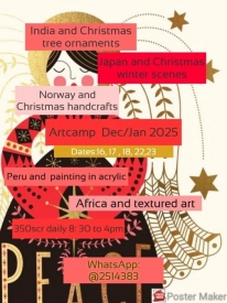 CHRISTMAS CREATIVE DECEMBER ARTCAMPS FOR 6+ / ZURI ART STUDIO, ROCHE CAIMAN, WHATSAPP 251 4383