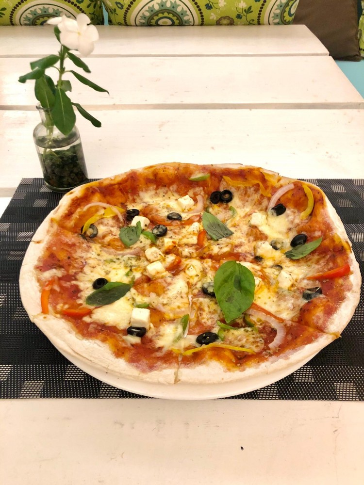 PIZZA GREEK - Tomato sauce/feta cheese/ olives