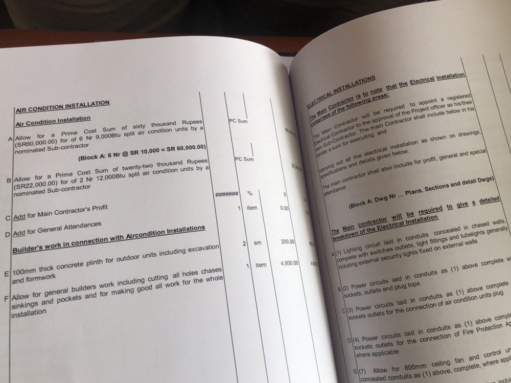 PREPARING BILLS OF QUANTITIES > The bill BOQ is issued to tenderers for them to prepare a price for carrying out the works.