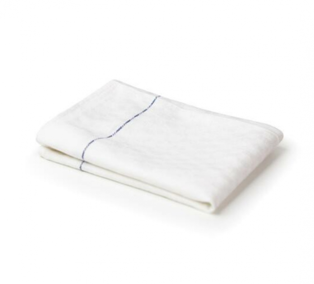 100% Cotton Dice Weave Size: 50x70cm Super Absorbent & highly durable Machine washable, tumble dry White with Blue stripe