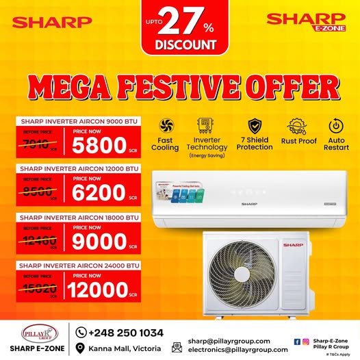 #sharpezone #ChristmasOffer #AirconDeals #StayCool #FestiveSale #Seychelles #SharpAircon SHARP E-ZonePillay R Group