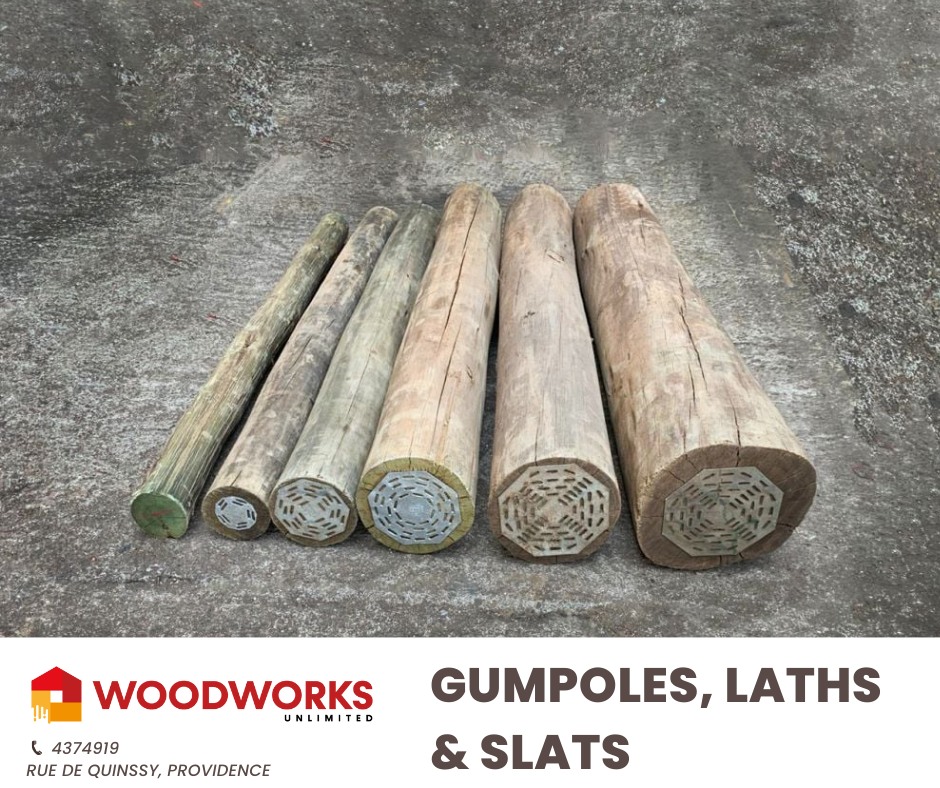 Gum poles, laths and slats available at Woodworks Unlimited.